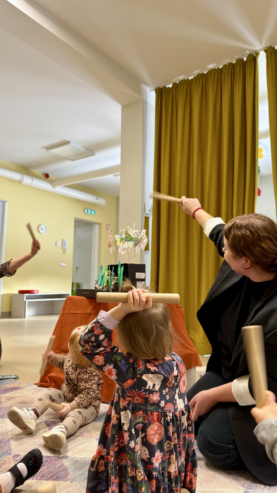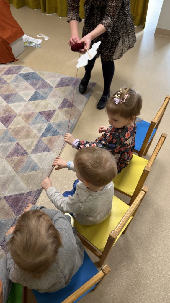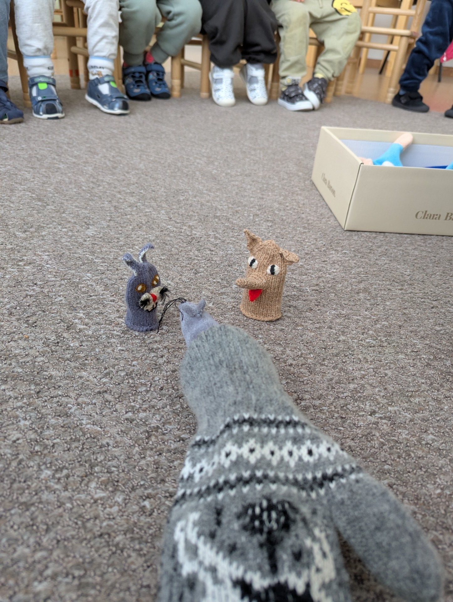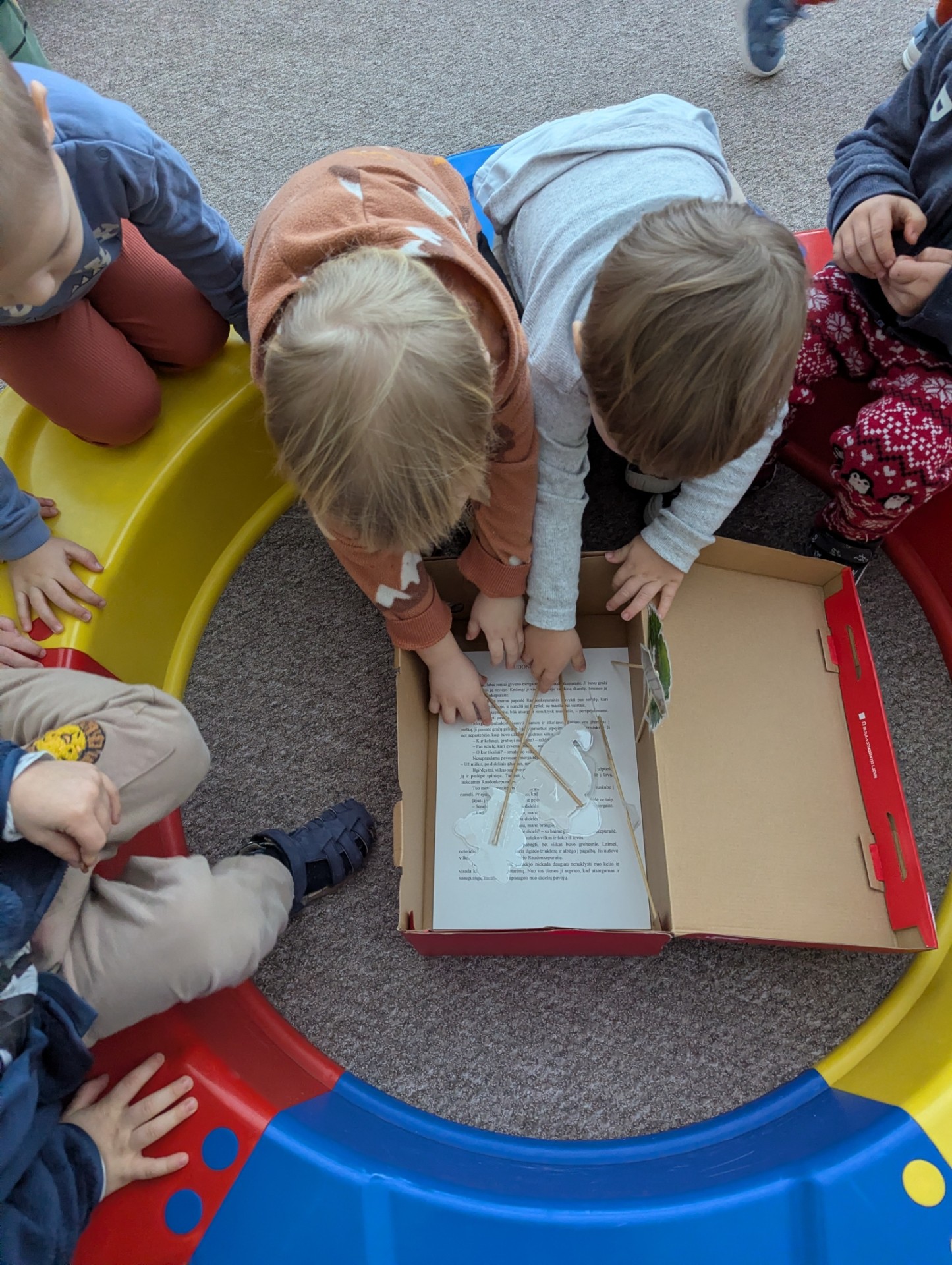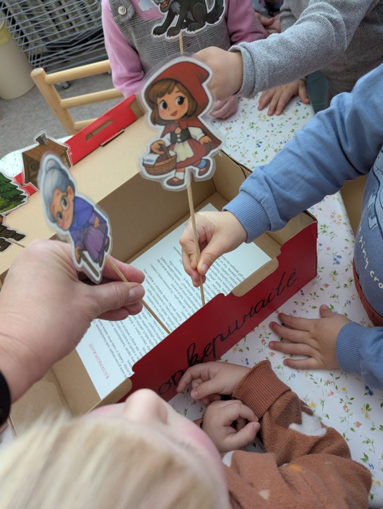 Vaikai klausėsi keturių batų dėžutėse „apsigyvenusių“ pasakų: „Skruzdėliukas Nežiniukas“, „Raudonkepuraitė“, „Ropė“ ir „Pirštinė“. Grupės tarpusavyje keitėsi pasakomis, todėl visi vaikai turėjo galimybę išgirsti ir pamatyti skirtingas pasakas. Mažieji ne tik klausėsi, bet ir aktyviai dalyvavo vaidinimuose – įsitraukė judesiais, garsais, emocijomis, bandė atkartoti veikėjų veiksmus. Parinkti muzikiniai intarpai padėjo vaikams išlaikyti dėmesį, atsipalaiduoti ir lengviau sekti pasakos eigą. Muzika kūrė jaukią, įtraukiančią atmosferą ir stiprino emocinį poveikį.