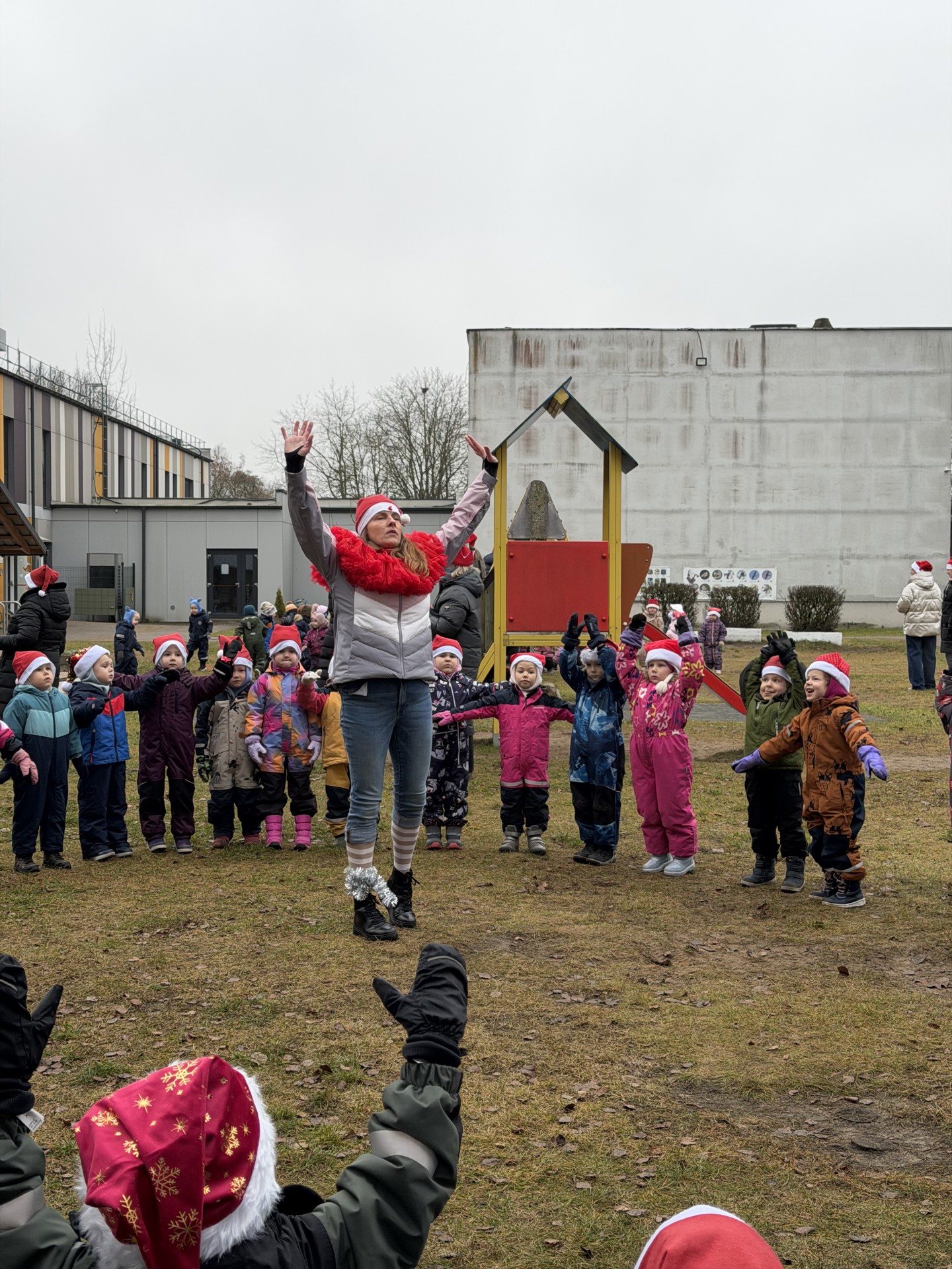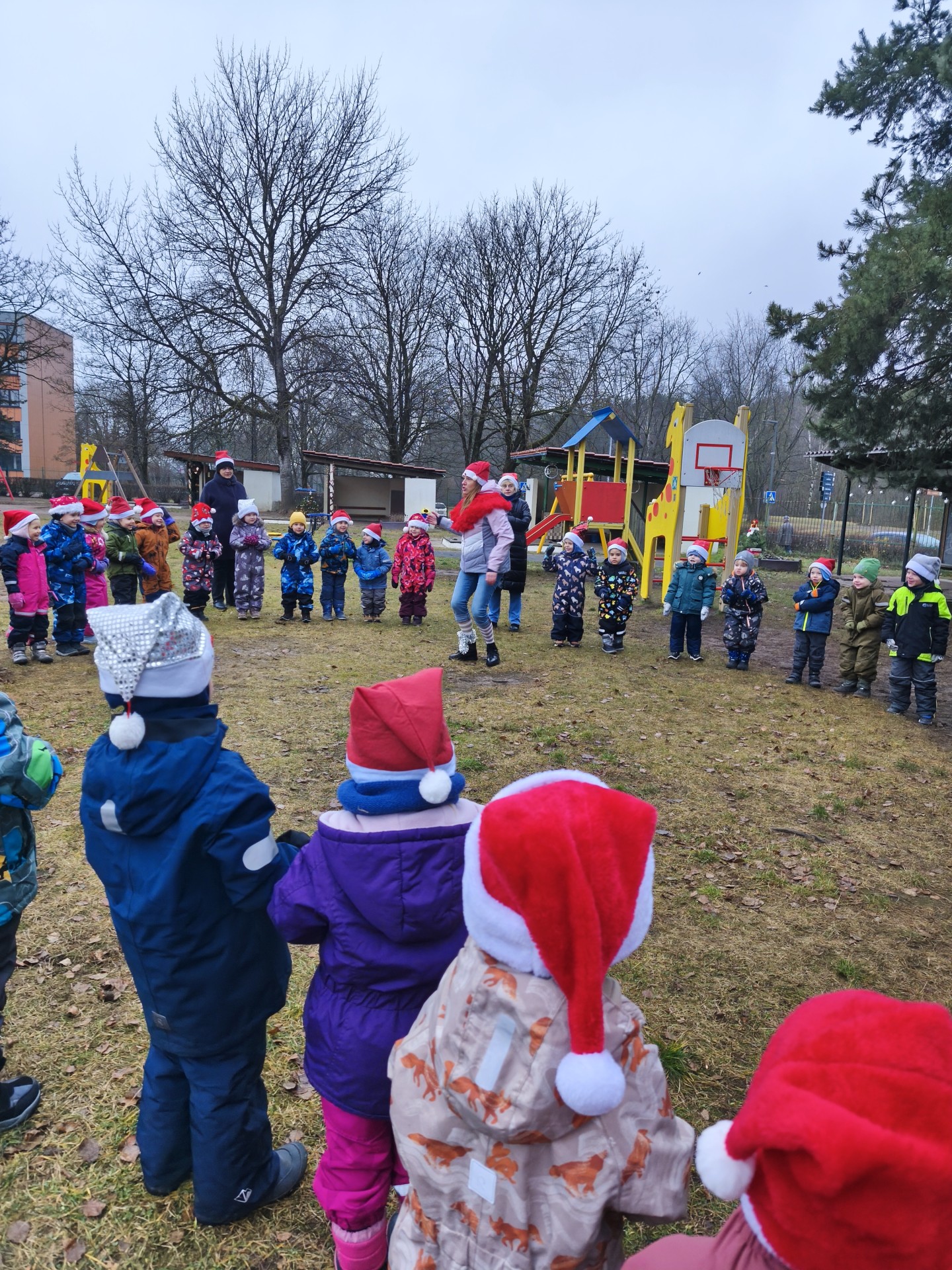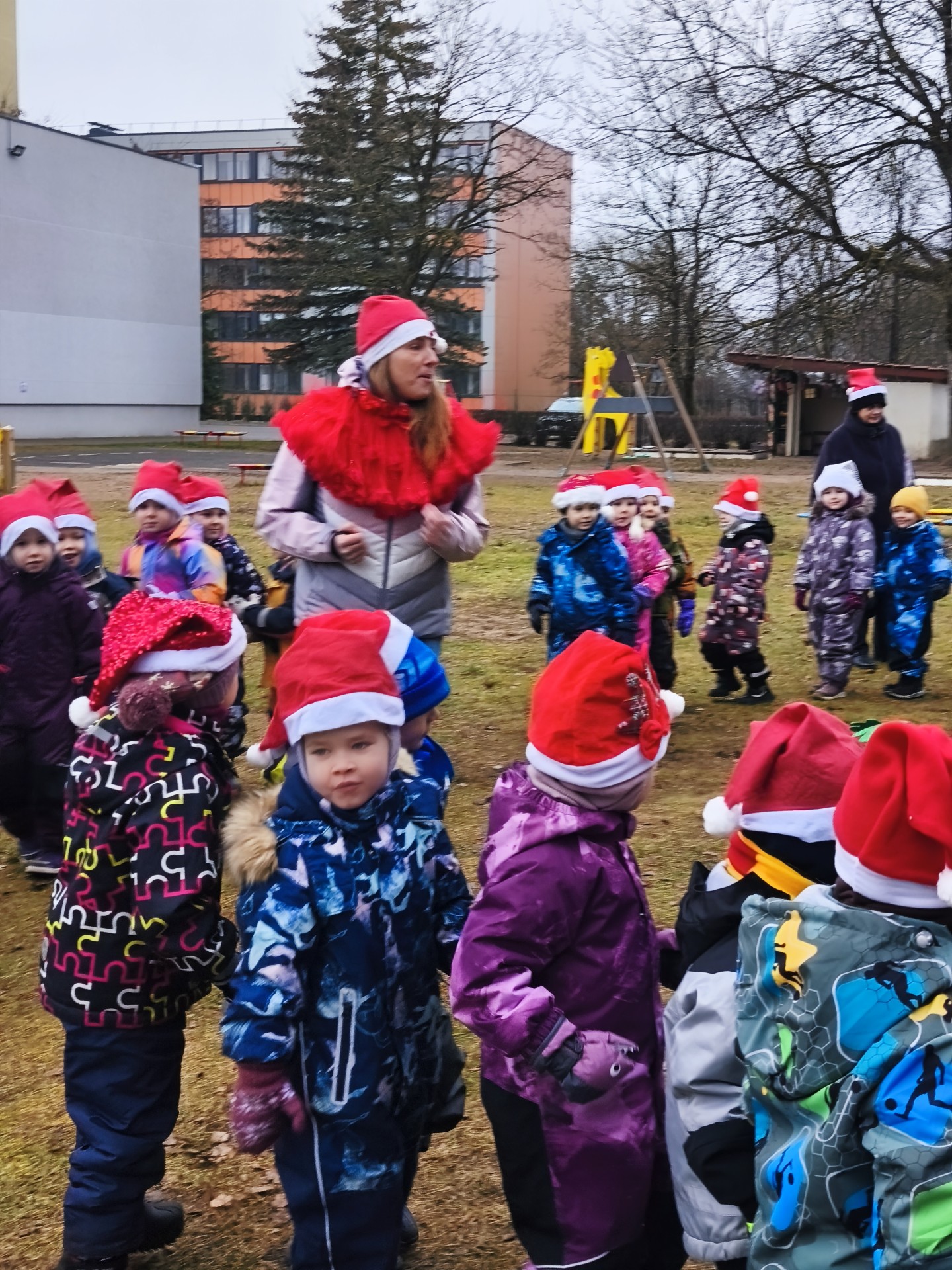 Gruodžio 8-osios rytas mūsų darželio kiemą pavertė tikra Kalėdų nuotykių šalimi! 10 valandą čia sušvito raudonų nykštukų kepurių jūra, o vaikai leidosi į smagų, šurmulio pilną Kalėdinį maratoną.