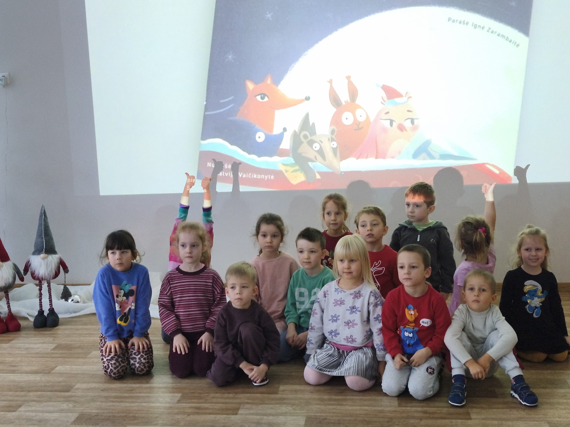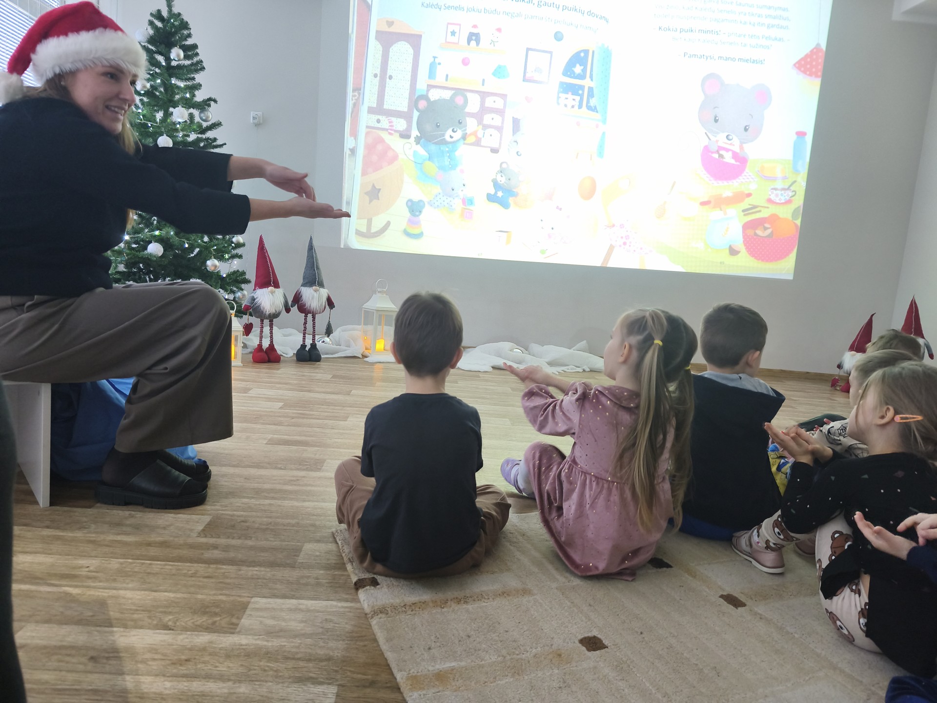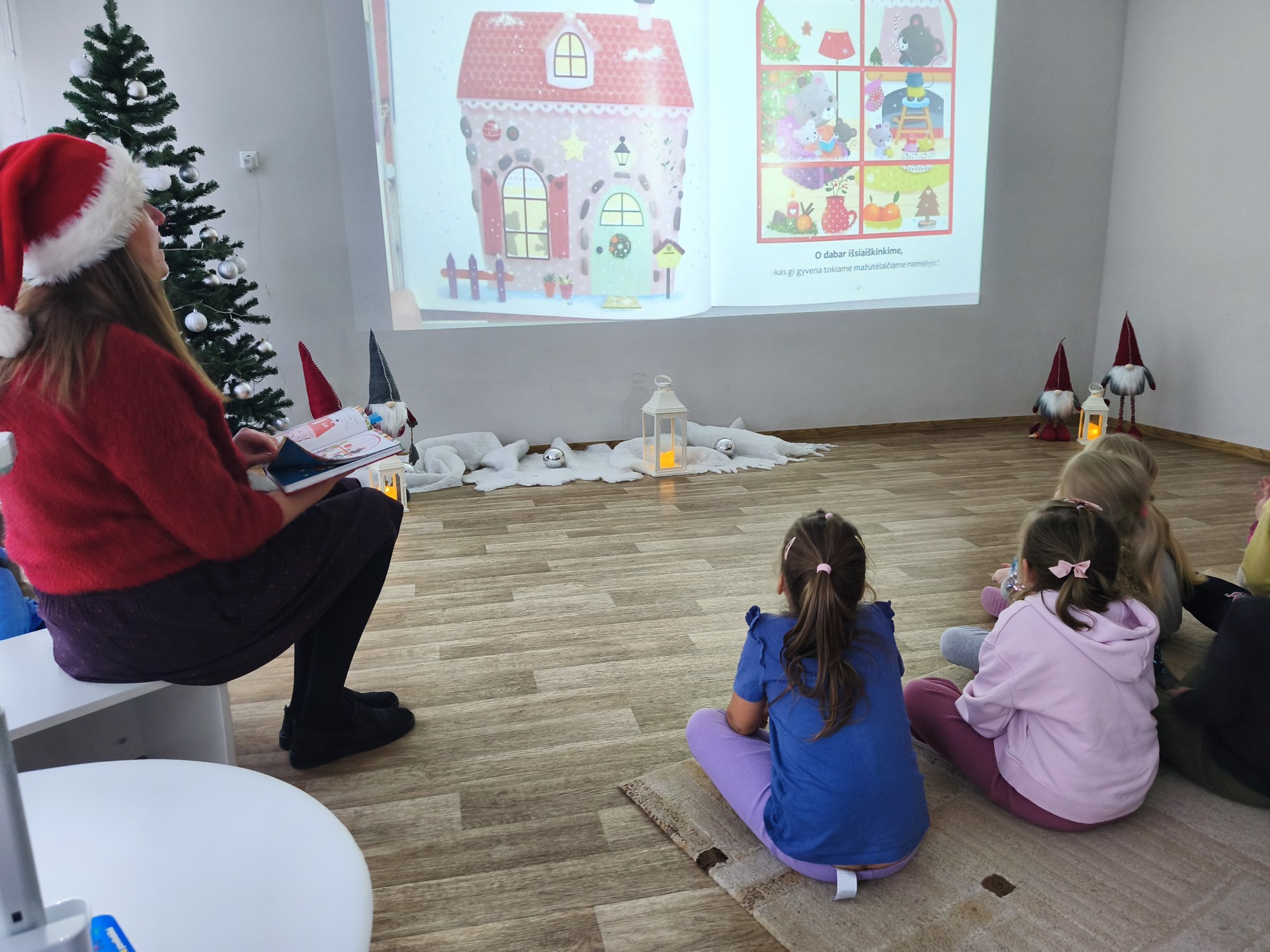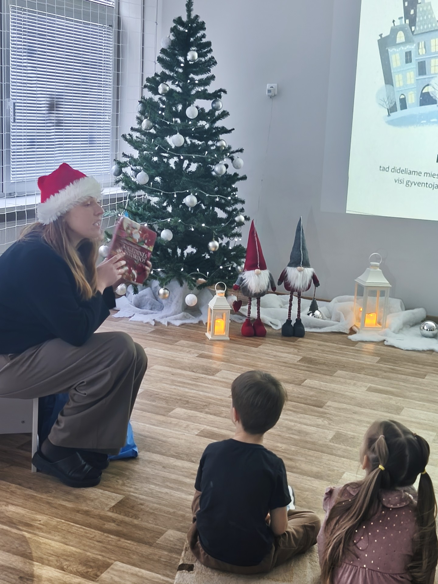 .Jaukioje, ramioje aplinkoje vaikai klausėsi žiemos pasakų, stebėjo vaizdus, klausėsi garsų, žaidė su šešėliais bei įsitraukė į vaizduotės pasaulį tiek judesiais ir tiek emocijomis. Skaitymai tapo ne tik pasakojimų klausymu, bet ir mažomis patirtimis – apie stebuklą, laukimą, šilumą ir buvimą kartu.