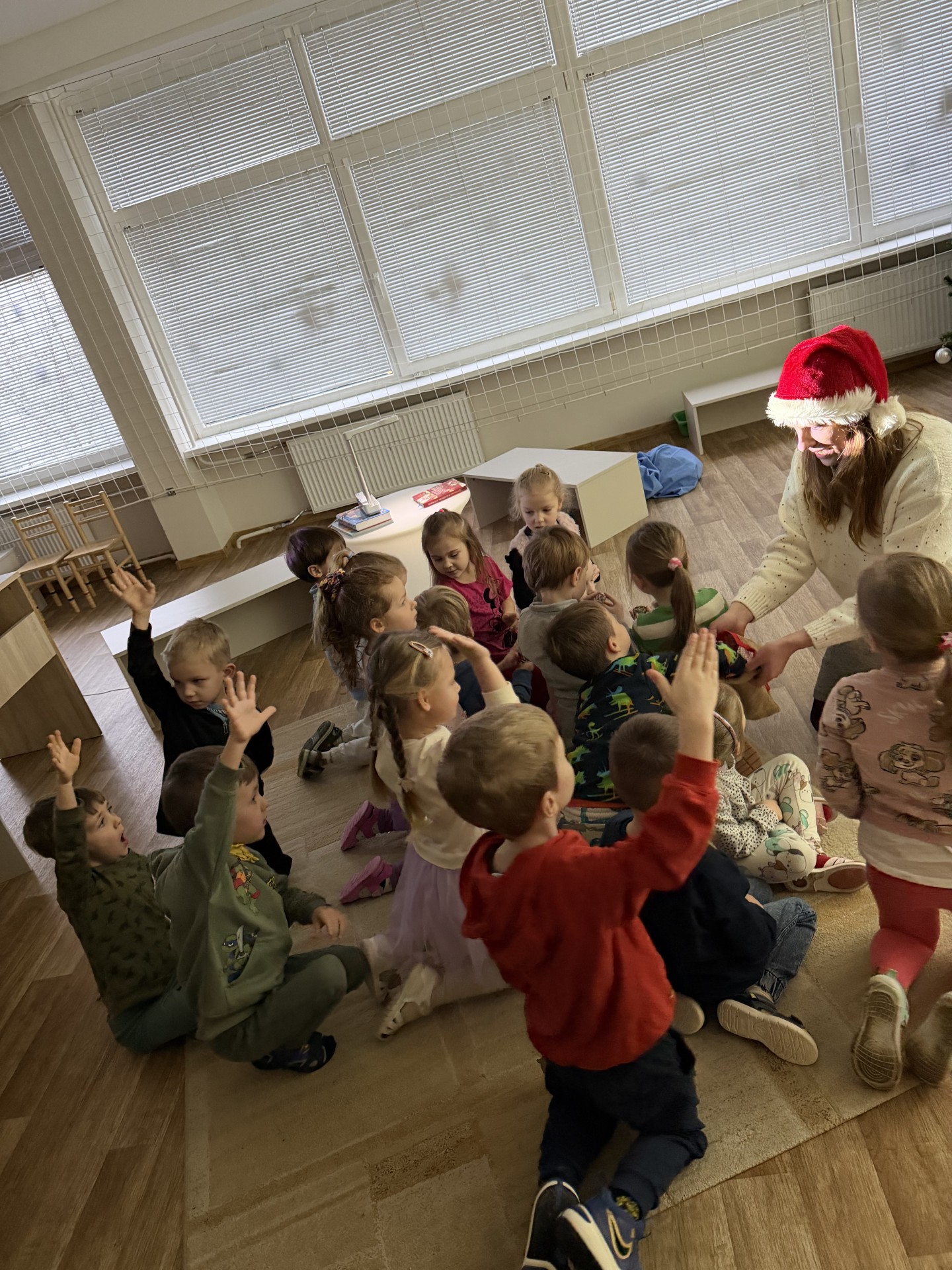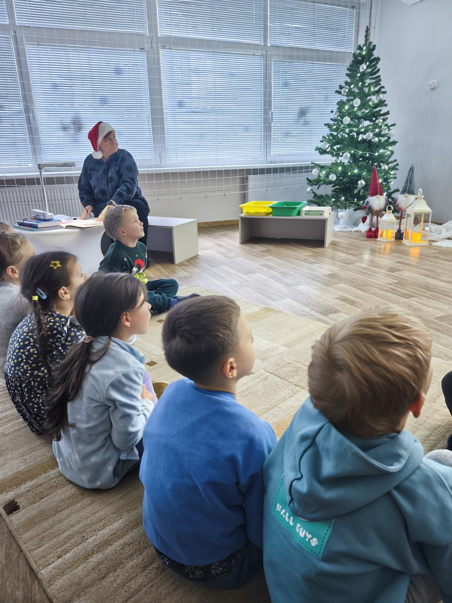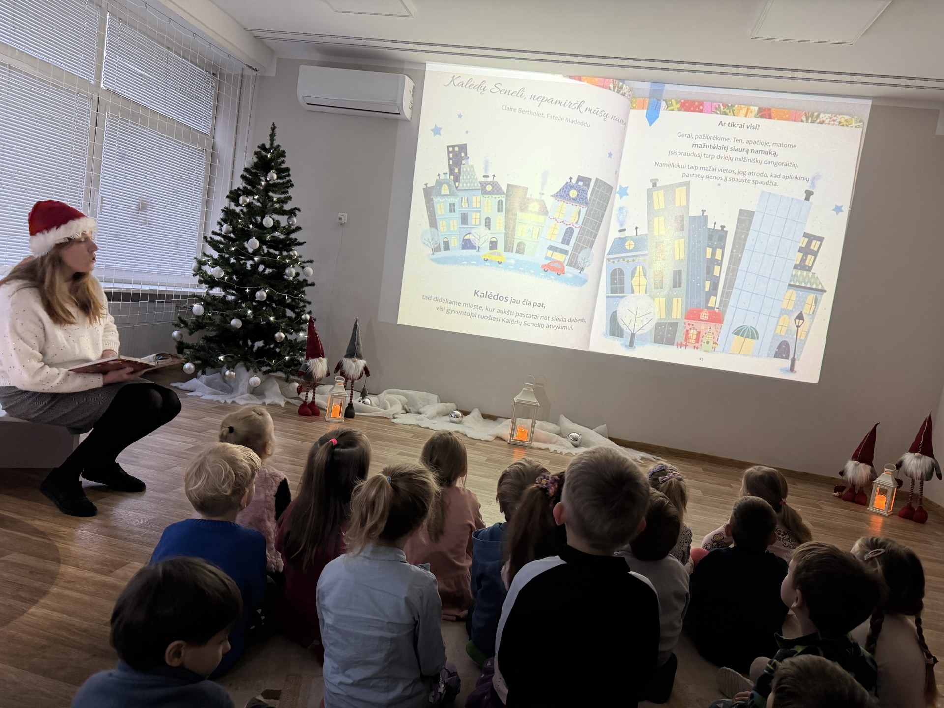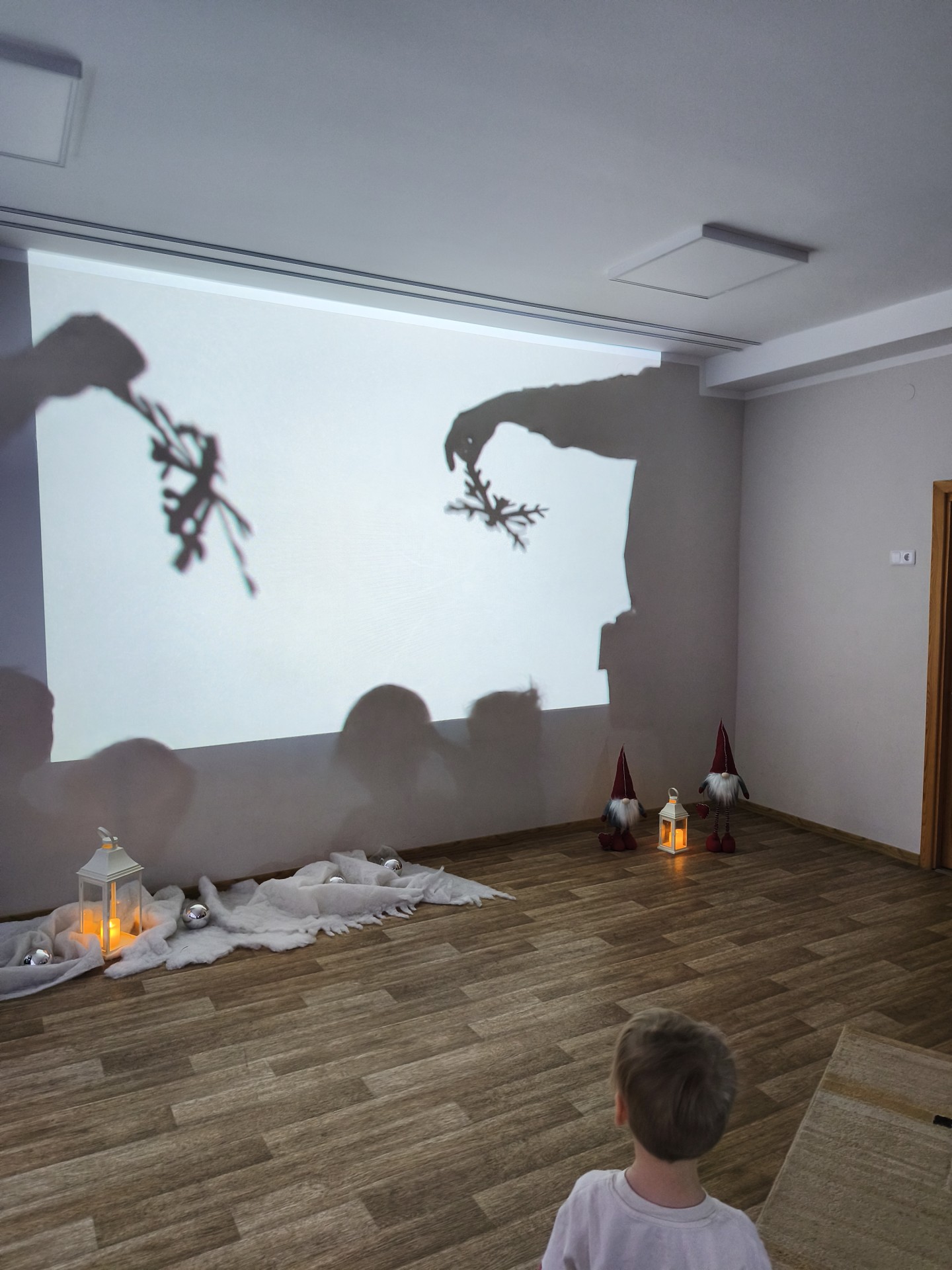 .Jaukioje, ramioje aplinkoje vaikai klausėsi žiemos pasakų, stebėjo vaizdus, klausėsi garsų, žaidė su šešėliais bei įsitraukė į vaizduotės pasaulį tiek judesiais ir tiek emocijomis. Skaitymai tapo ne tik pasakojimų klausymu, bet ir mažomis patirtimis – apie stebuklą, laukimą, šilumą ir buvimą kartu.
